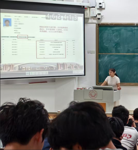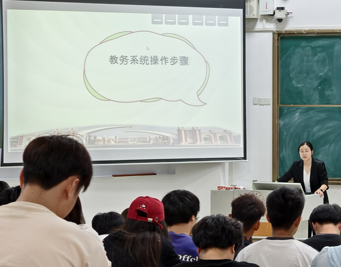 随后,教学秘书曾雪莲老师还专门针对学生教务系统操作进行了细致讲解。从课程选修流程到学分考评标准,她手把手指导新生熟悉系统功能,帮助大家掌握运用教务系统安排学业的技巧,为后续选课、查分、学业规划等环节提供实用指引,让新生对大学学业管理有了更清晰的方向与把控力。