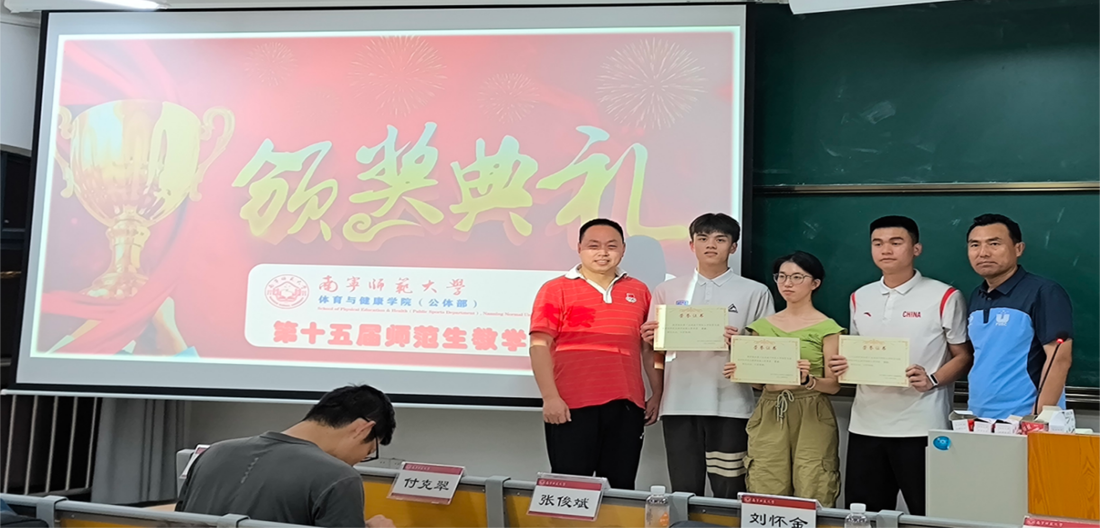 本次师范生教学技能大赛经过几个小时的激烈角逐和评委们的认真评审,最终评选出了一等奖、二等奖和三等奖,评委分别为获奖选手颁发了荣誉证书,并与选手们合影留念。最终2021级陆晖健同学荣获初中组教学技能大赛一等奖,2022级伍南舟同学荣获高中组教学技能大赛一等奖,2023级研究生汤玉琦获得研究生组一等奖。评委组一致同意由陆晖健、伍南舟同学代表学院参加南宁师范大学师范生教学技能大赛决赛。