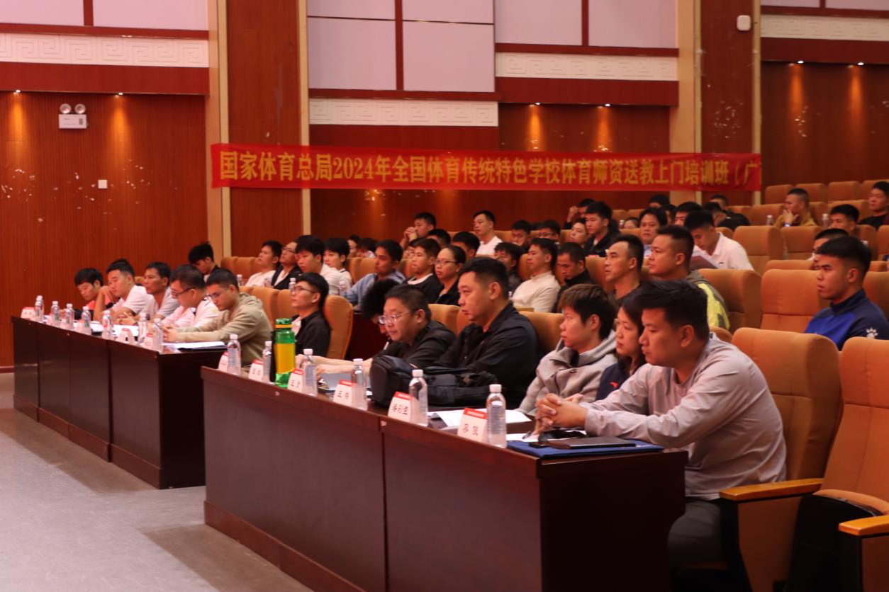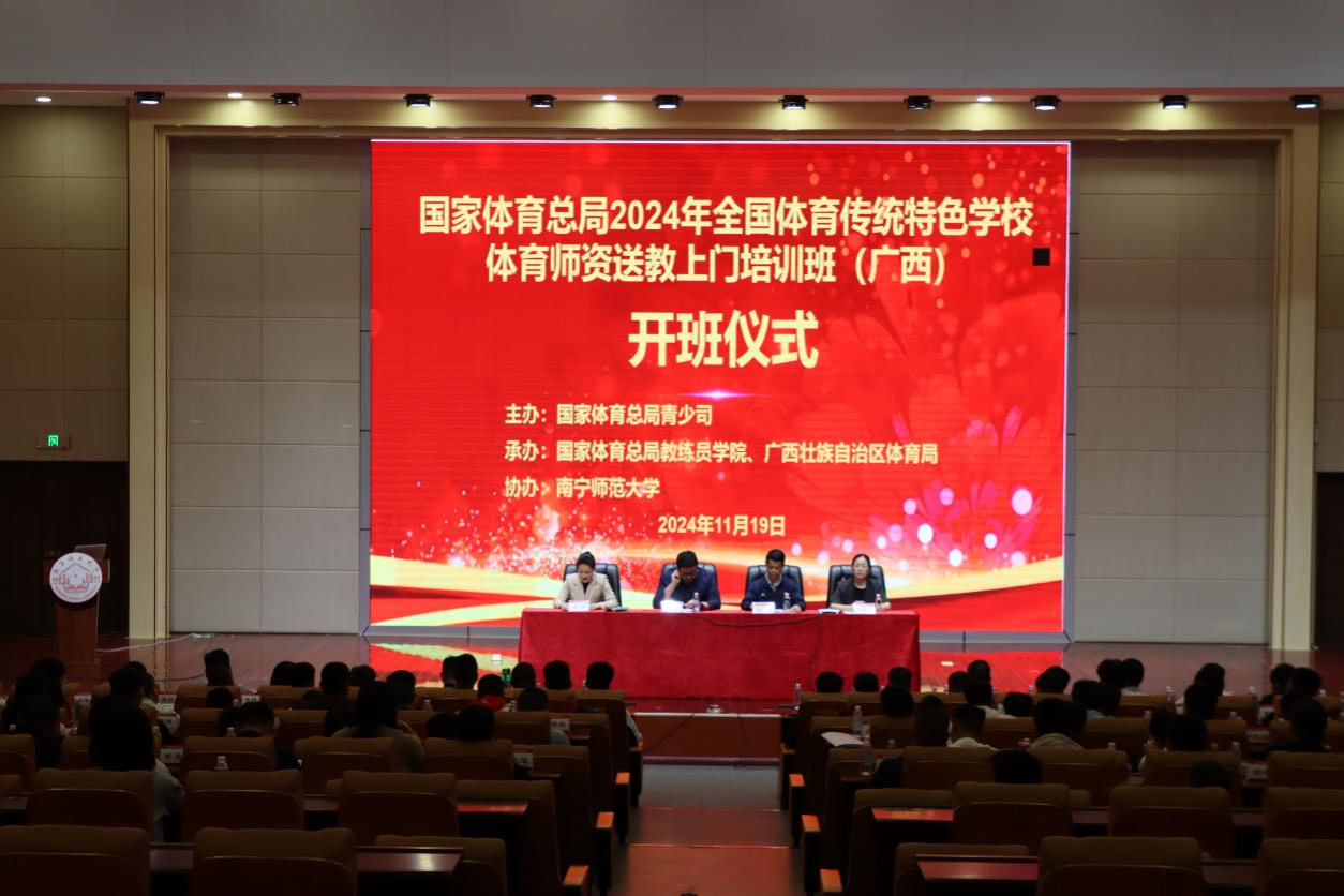 11月19日上午,由国家体育总局青少司主办,国家体育总局教练员学院、广西壮族自治区体育局承办,南宁师范大学协办的2024年全国体育传统特色学校体育师资送教上门培训班(广西)在南宁师范大学开班。国家体育总局教练员学院项目主管许浒、广西体育局青少年体育处一级调研员蓝桂明、167net必赢入口,167.nt必赢官网院长赵芳出席开班仪式。来自全区100名各级各类体育传统特色学校的篮球骨干教师参加培训。